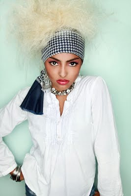 I was inspired to do a scarf shoot by another photograph. Luckily I had a vintage Pierre Cardin scarf in my closet (I don't think I've even worn it!) And, of course, my studio mate supplied the jewelry.